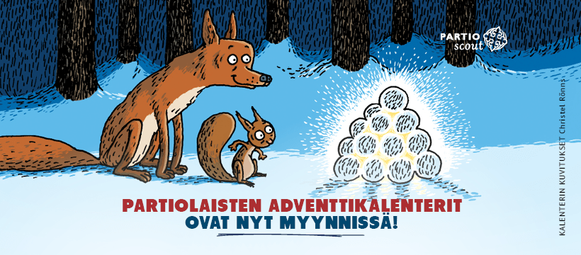 Partiolaisten adventtikalenterit ovat täällä! Kampanja alkaa 15.10. ja on lippukunnallemme vuoden tärkein varainhankintakeino, joten ilahdumme ihan jokaisesta myydystä kalenterista. Tavoitteenamme on jatkossakin pitää esimerkiksi retkien hinnat kohtuullisina.