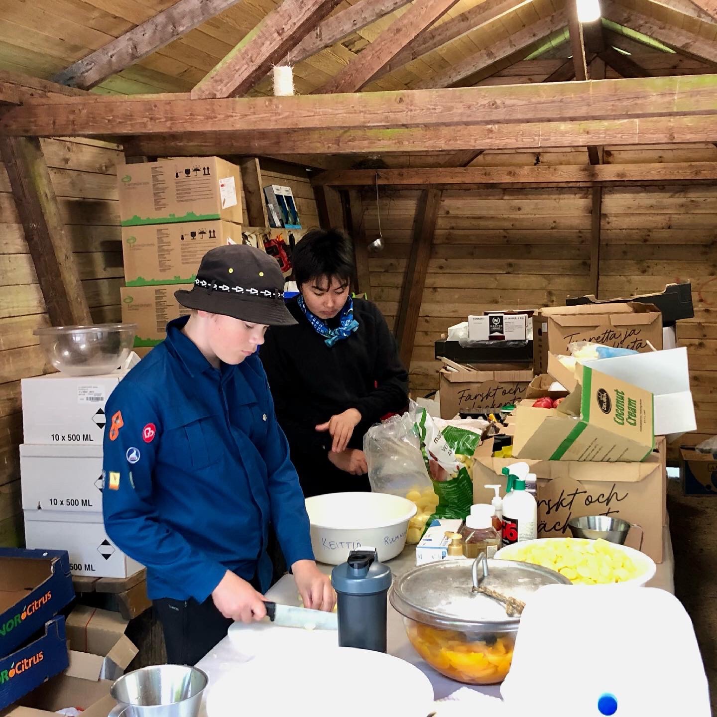 Samana päivänä paistettiin satoja lettuja ja raikkaat hedelmät pitivät leiriläiset ravittuina lämpimässä säässä.