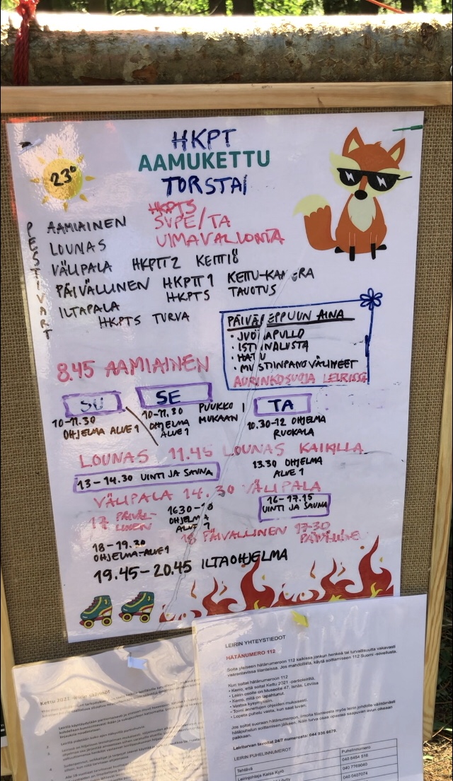 Kylmä yö vaihtui lauantaina aurinkoiseen paahteeseen. Mystisen yön tapahtumien jälkeen leiri heräsi linnunlauluun ja haikkilaiset palasivat kotikonnuille hulppean brunssipöydän äärelle.
